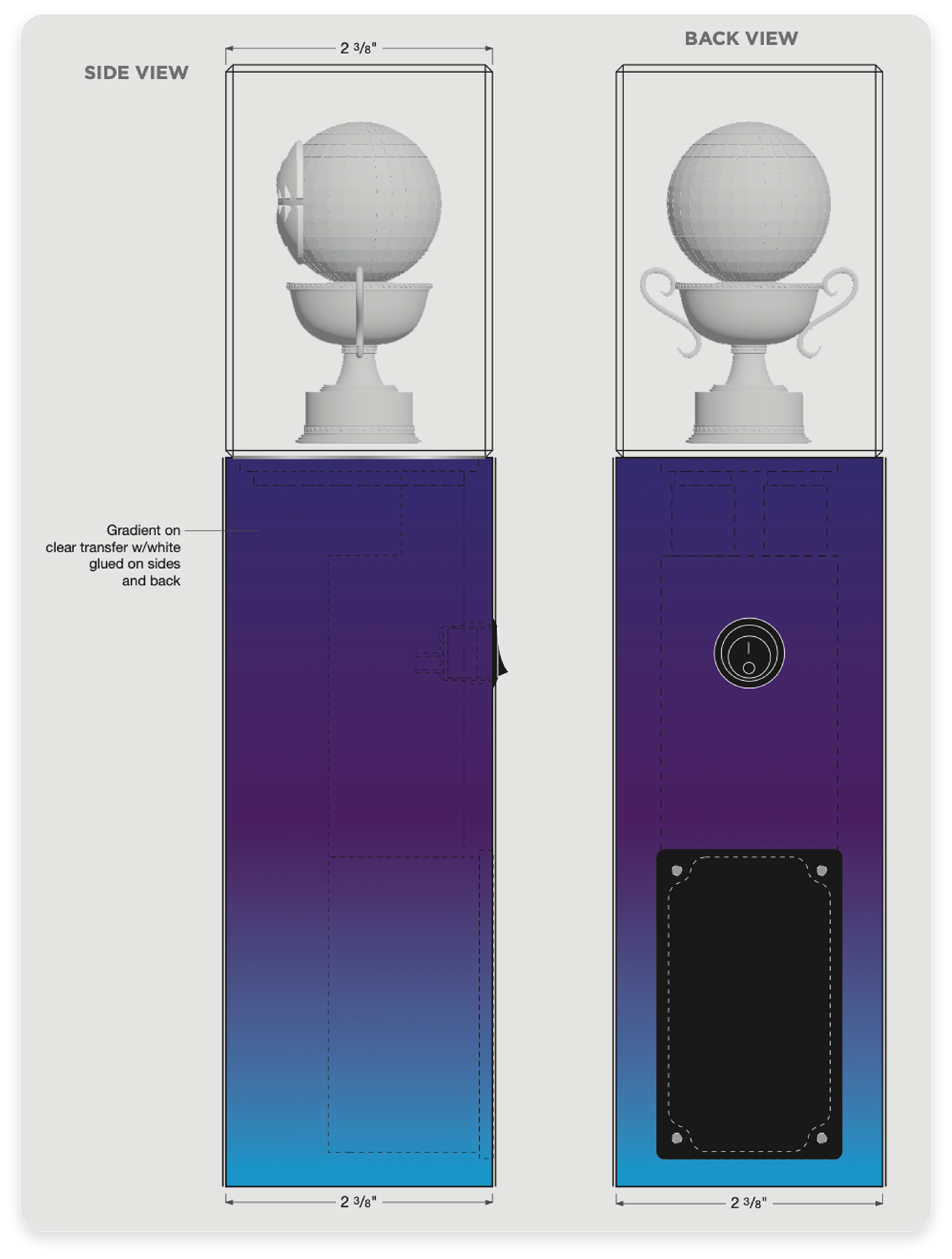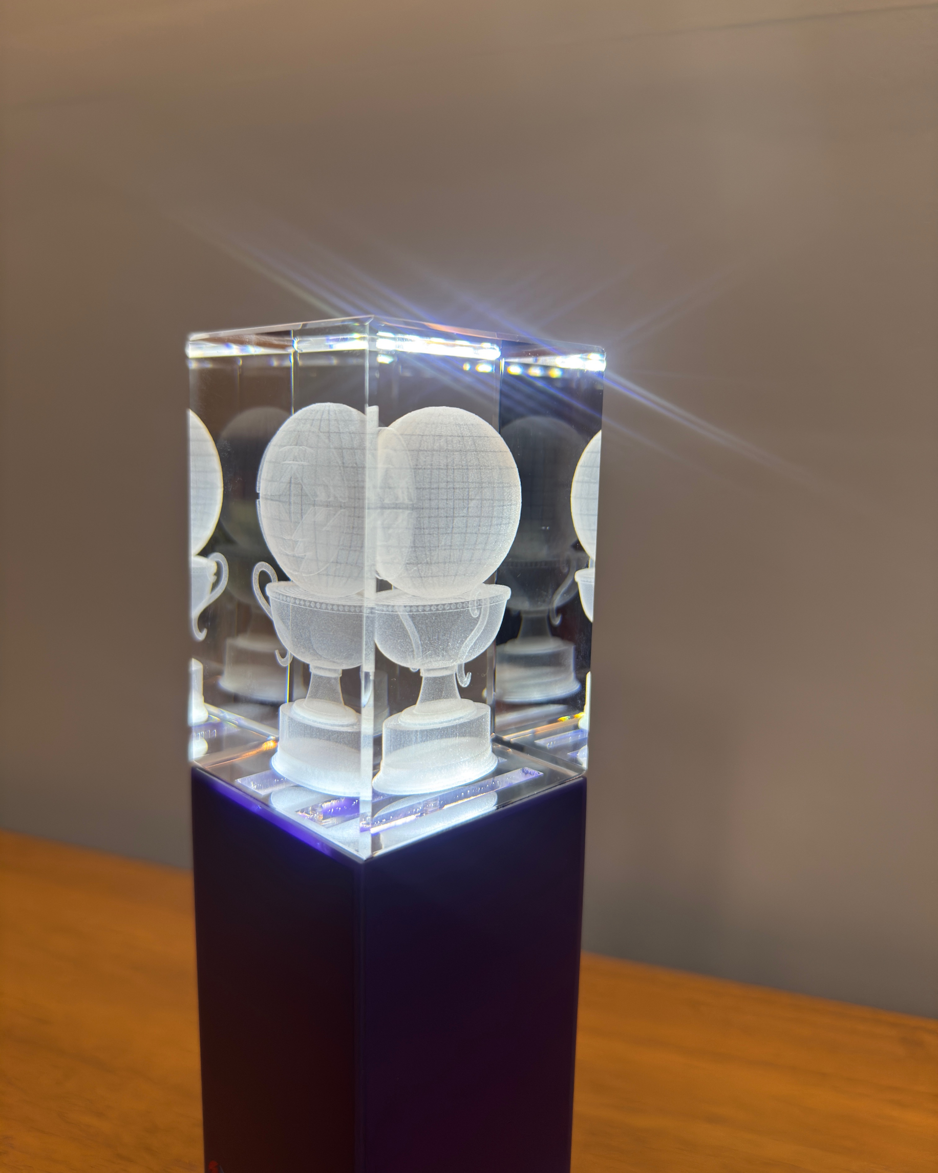 The design centers on a seamless fusion of high-grade optical crystal and a vibrant, opaque gradient base. By combining sub-surface 3D laser etching with integrated LED lighting, the trophy creates the illusion of a suspended gold icon, transforming digital influence into a premium physical landmark. Every technical detail—from the UV-bonded joints to the scratch-resistant purple-to-orange fade—was engineered to ensure the award is both a durable travel-friendly object and a high-end sculptural piece.